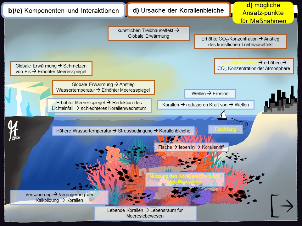 Ahnert, 2024 d) Diskutiert gemeinsam, welche Komponenten und Interaktionen die Korallenbleiche verursachen. Benennt Maßnahmen, die das Ausbleichen der Korallen verringern oder stoppen könnten.