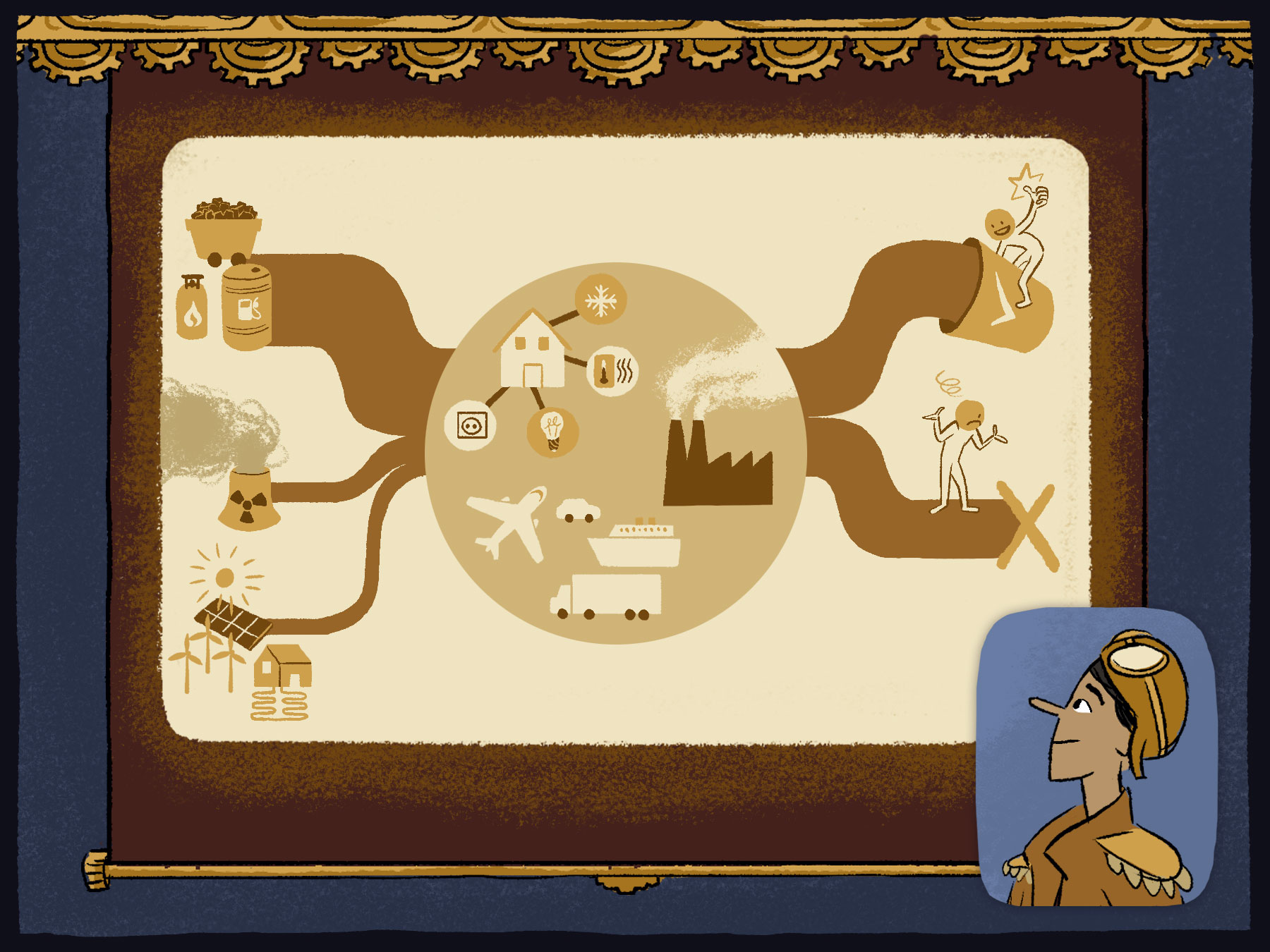 In this episode, the characters explore the concept of energy while preparing a theater play about the design of an energy superpower machine. As they discuss different aspects of the play, they encounter real-world questions about energy transformations, conservation, and dissipation. Their dialogue leads them to question whether energy can be "used up" and how we can distinguish between useful and non-useful energy. By engaging with historical experiments and conceptual discussions, they progressively refine their understanding of energy as a unifying principle across different domains of physics, chemistry, and biology.