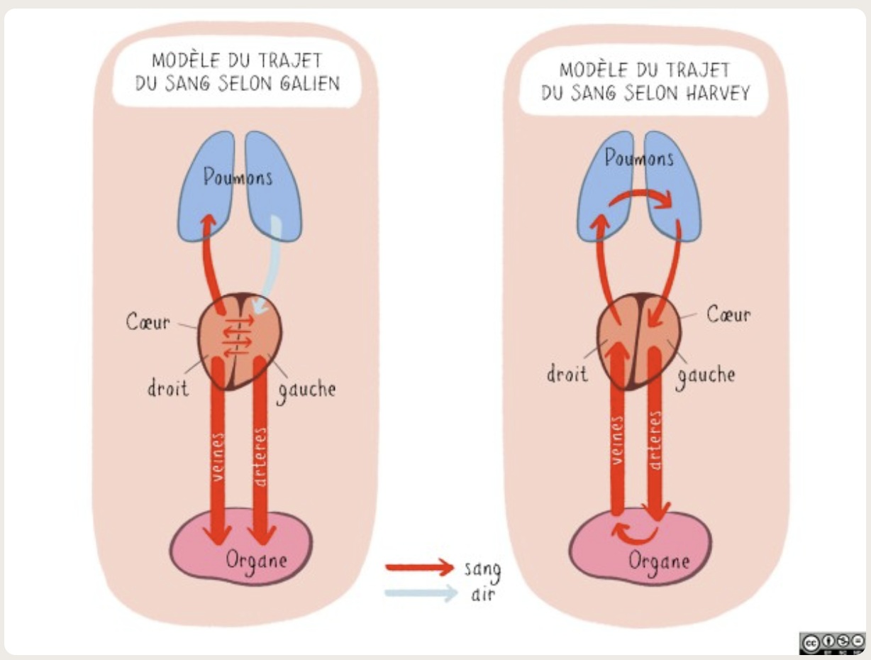 A circulação sanguínea foi um conceito que não se construiu de um dia para o outro. De facto, embora os movimentos do coração e do sangue tenham sido objeto de interesse desde a Antiguidade, só no século XVII é que o médico inglês William Harley descobriu a circulação sanguínea. De facto, a partir do século II, o fluxo sanguíneo foi concebido de acordo com um modelo de irrigação: o sangue é distribuído do coração através das veias e artérias para os órgãos.