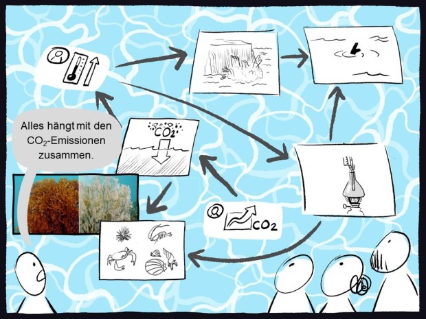 - Zum einen vermitteln die dargestellten Beobachtungen und Konzepte ein eindrucksvolles Bild des Ozeans als (lebendes) System, auf das auch die Spezies Mensch Einfluss nimmt. In Bezug auf den Klimawandel ist dieses Ökosystem sowohl aus physikalischer als auch biologischer Sicht eine bedeutende Komponente.