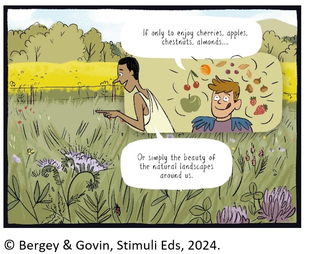In the proposed episode on biodiversity, we provide an opportunity for the teacher to refer in the lesson to shared values such as protecting the landscape and experiencing the beauty that biodiversity brings, we highlight how pollinators are important and the benefits humans have derived from some of them coexisting with them for thousands of years and, most importantly, we identify opportunities for collaborative action in and outside the classroom.
