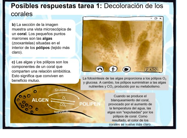 Tarea 1: Relee de nuevo los paneles del cómic que tratan del blanqueamiento del coral para responder a las siguientes tareas.