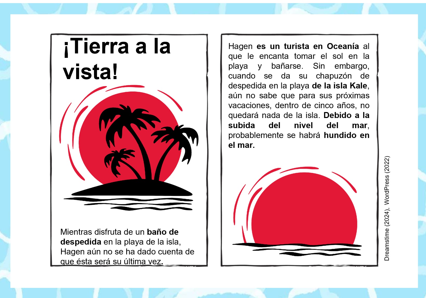 A continuación, los alumnos leen el Cómic científico de forma independiente. Pida a los alumnos que detengan la recepción durante el tercer capítulo. El público plantea hipótesis sobre el aumento del nivel del mar. Anime a sus alumnos a adoptar la perspectiva del público del cómic científico para responder a la tarea 3. Después, los alumnos pueden continuar su lectura independiente.