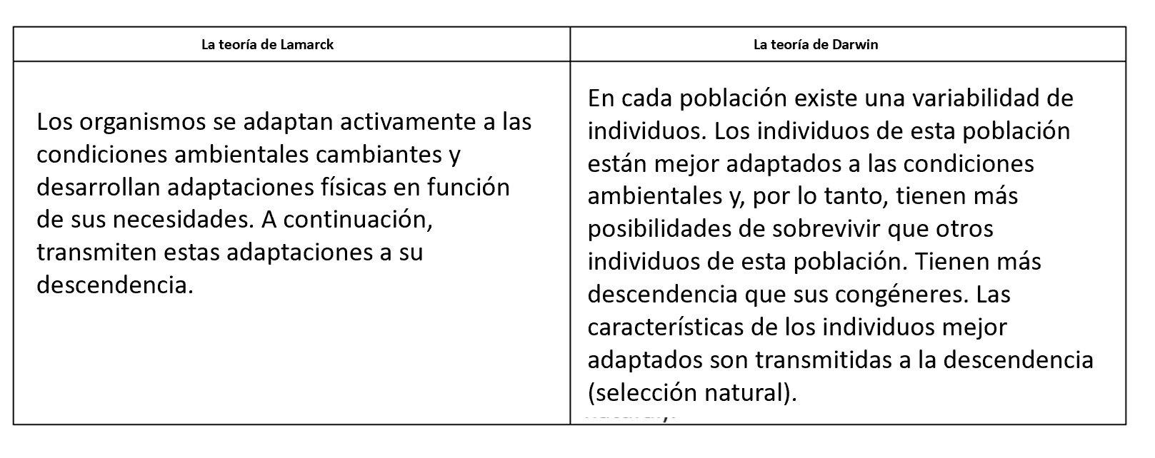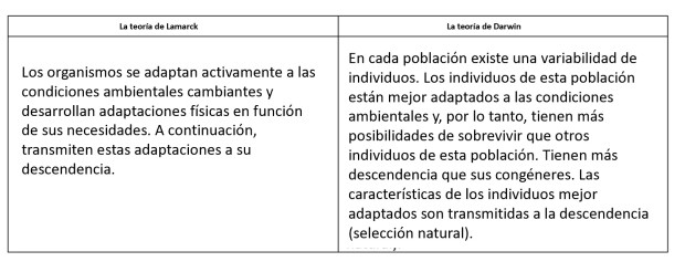 a) Describiendo las teorías de la evolución según Darwin y Lamarck en 2-4 frases cada una y