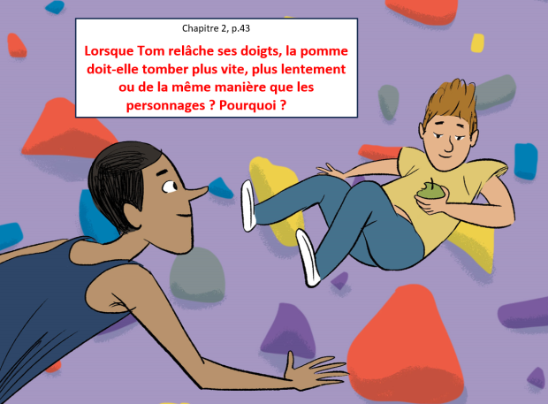 Après une première lecture individuelle de la bande dessinée par les élèves, il peut être utile de commencer par expliquer le problème physique qui se pose dans le premier chapitre : Cela peut se faire en interrogeant la position des différents personnages sur cette question et leurs arguments.